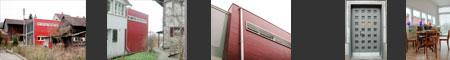 DER MIT ROTER HOLZVERSCHALUNG BEKLEIDETE NEBENBAUKÖRPER BEINHALTET
